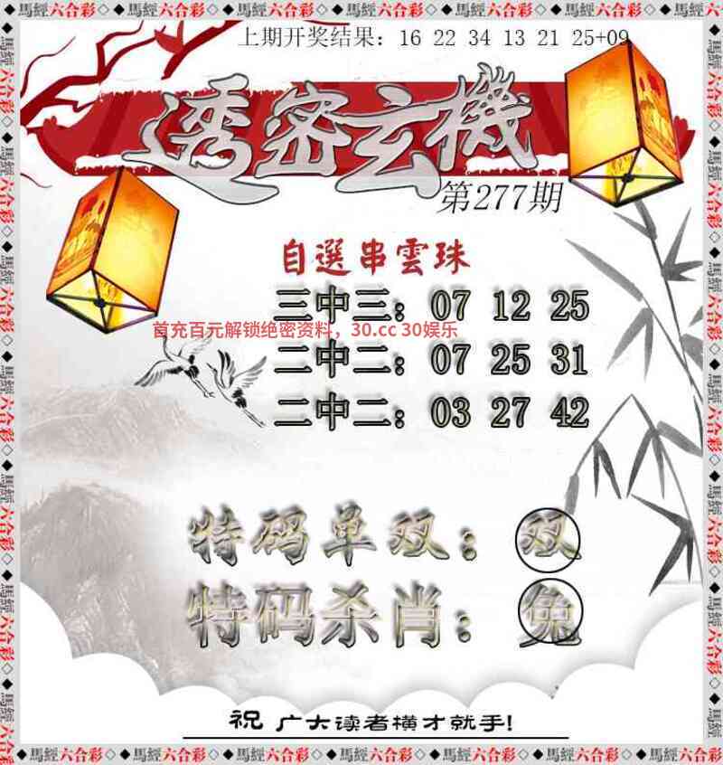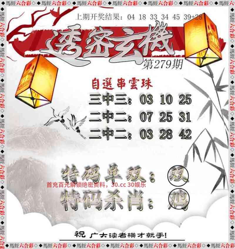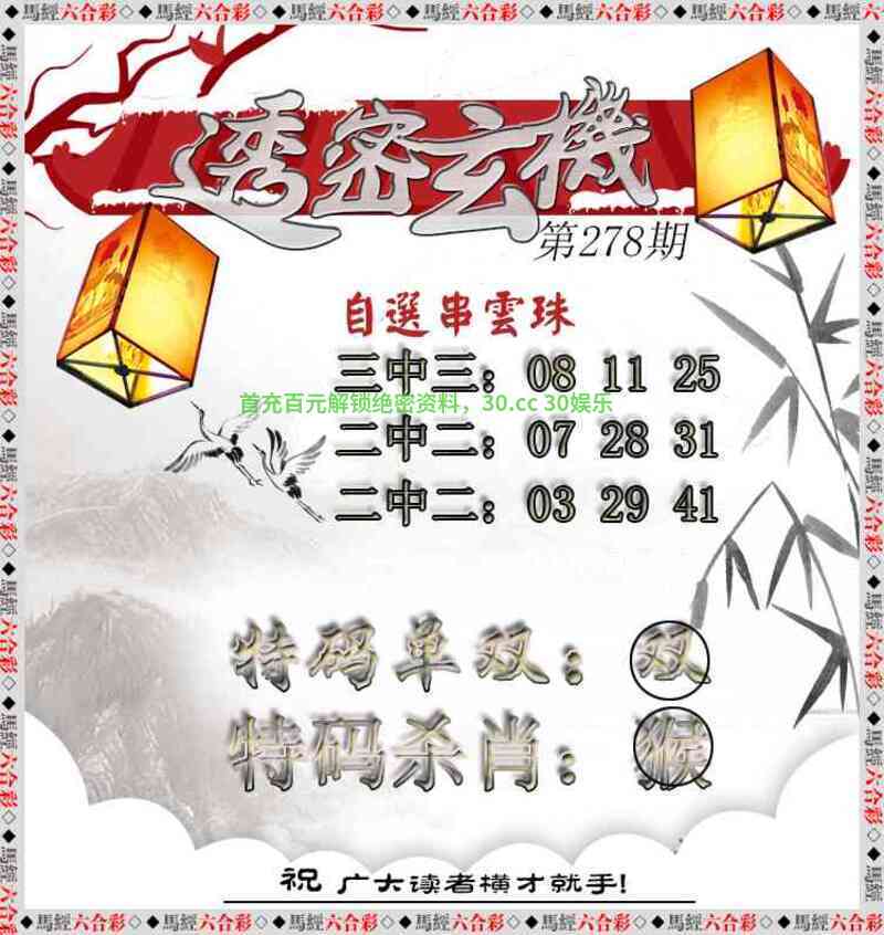 278期:『四字平尾』💟【五路财神】💟开:鸡45准 |